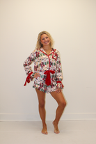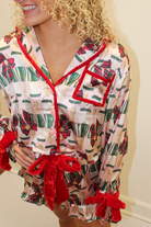 Our Fizz The Season Satin Ruffle Short Set combines a lively, party-ready pattern with a sweet, feminine silhouette. It’s the perfect dose of joy for cozy nights in.