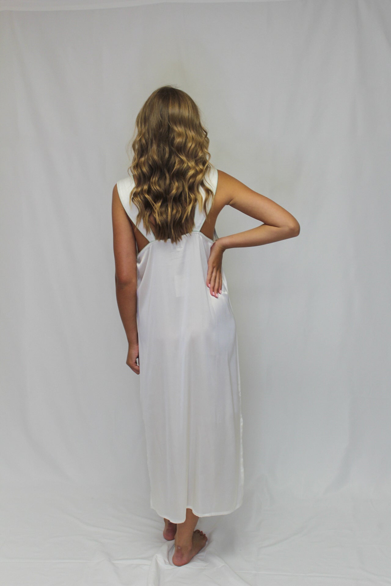 Birdie Satin Long Pajamas - Ivory/Seafoam