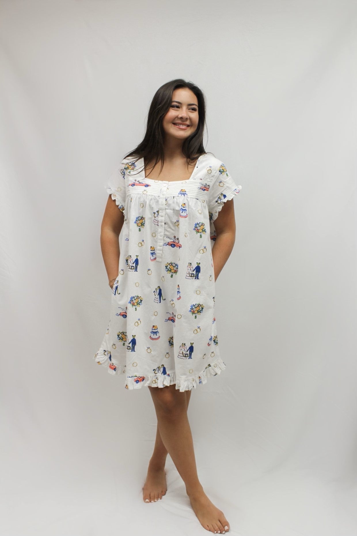 Birdie Satin Short Pajamas - Ivory/Seafoam