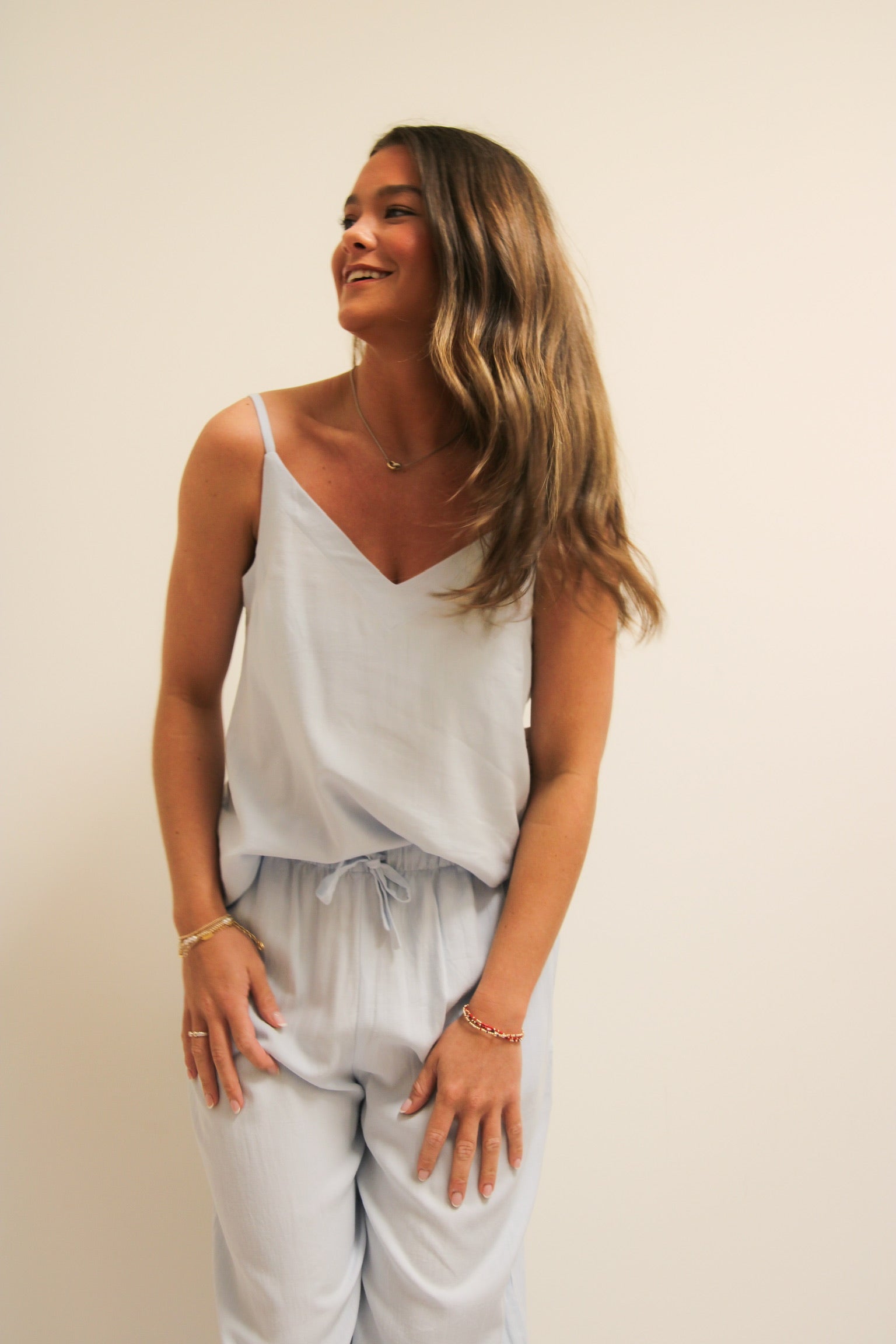 Linen Tank Pant Set -Sky