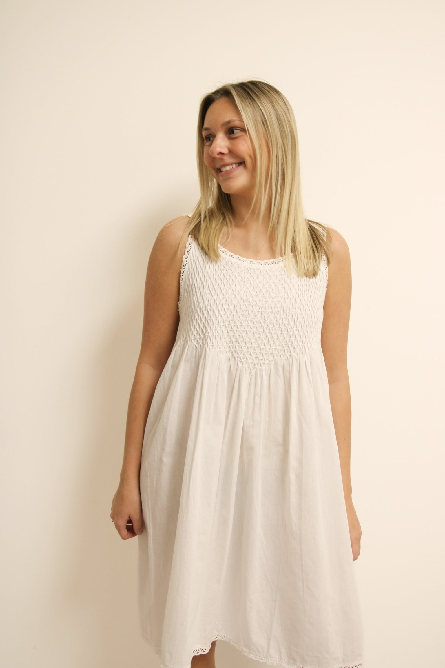 White Pintuck Embroidered Nightgown