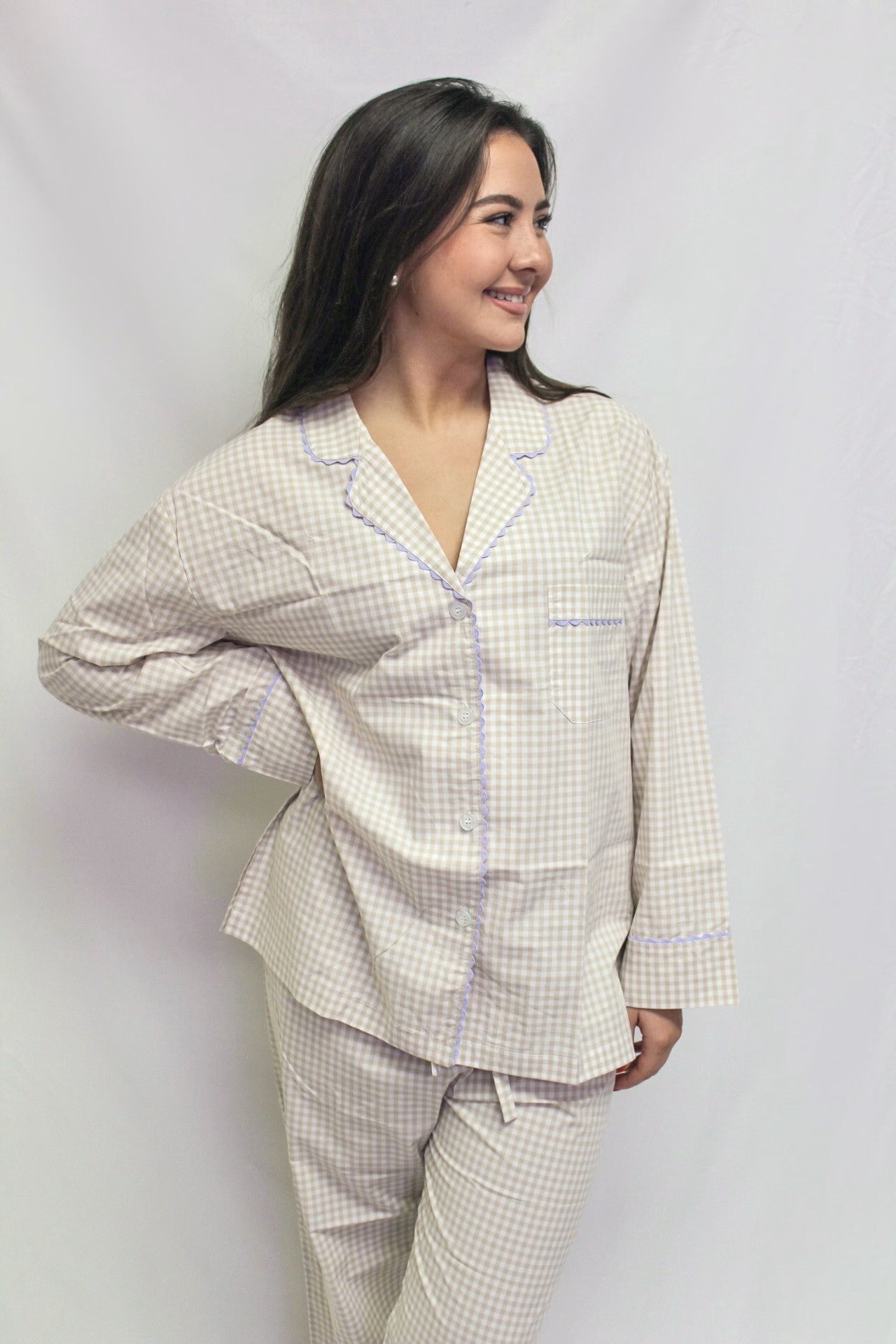 Khaki Gingham Cotton Pajamas