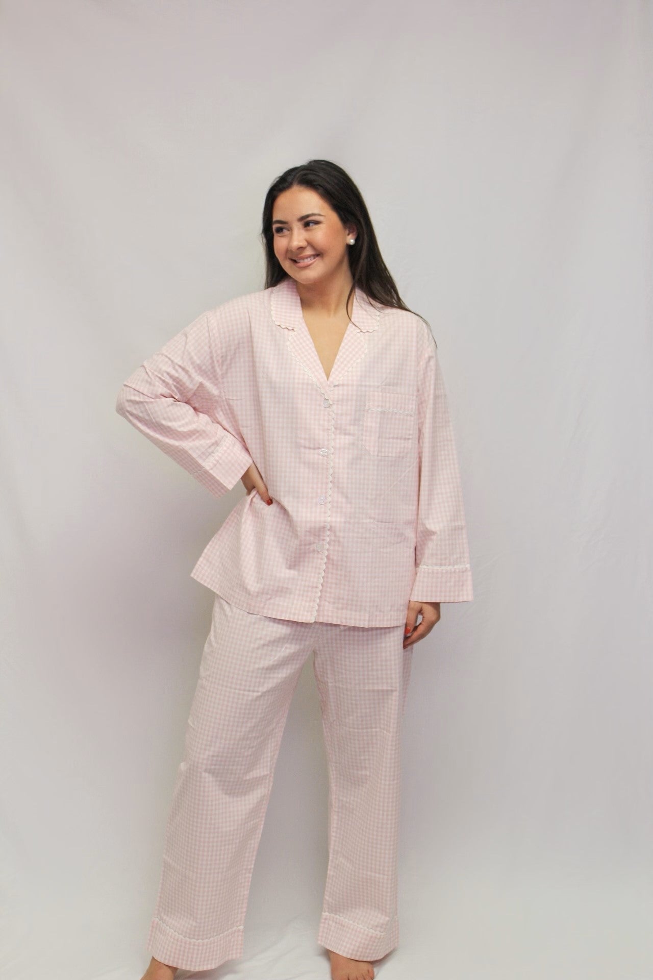 Pink Gingham Cotton Pajama Set