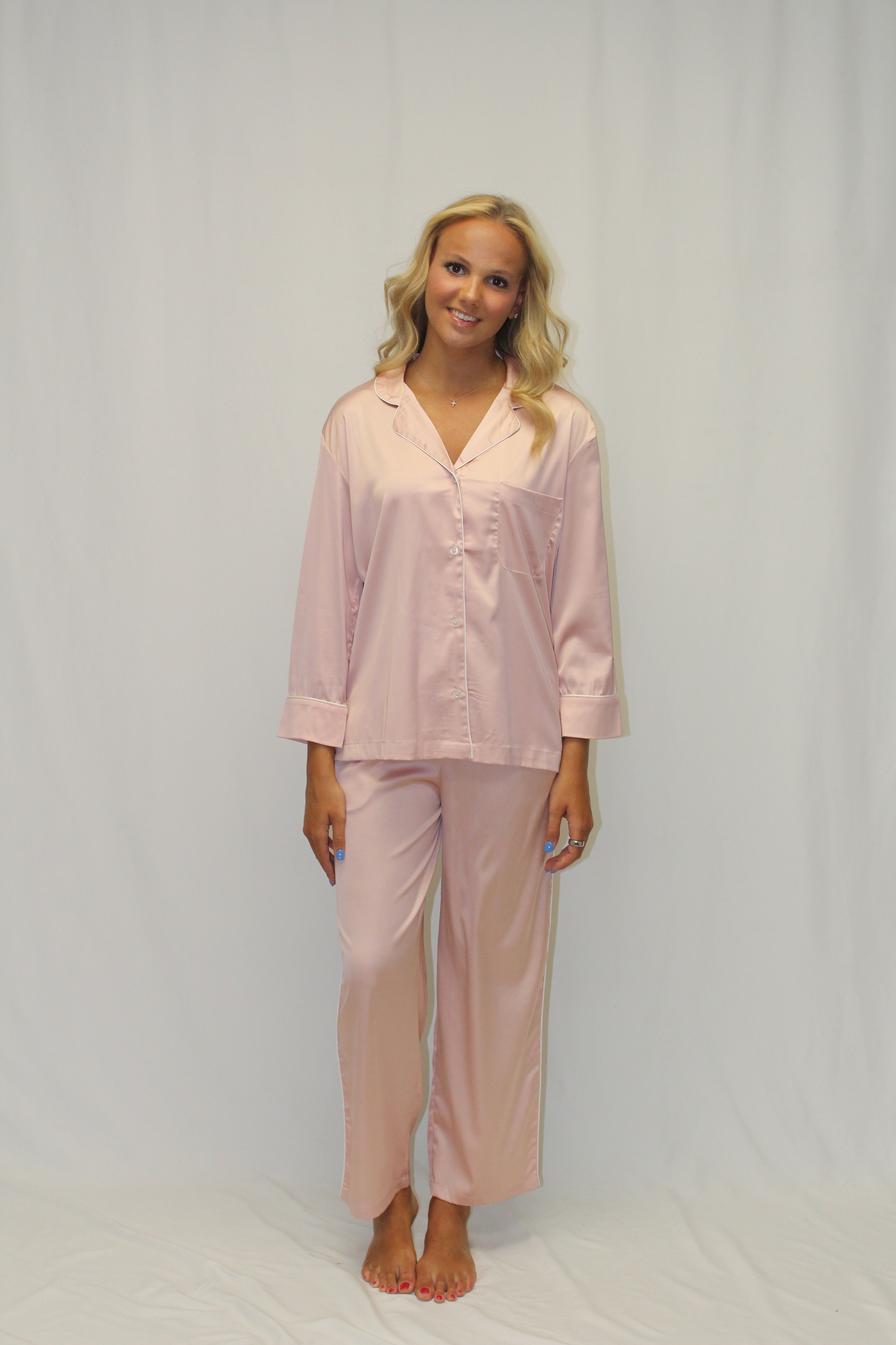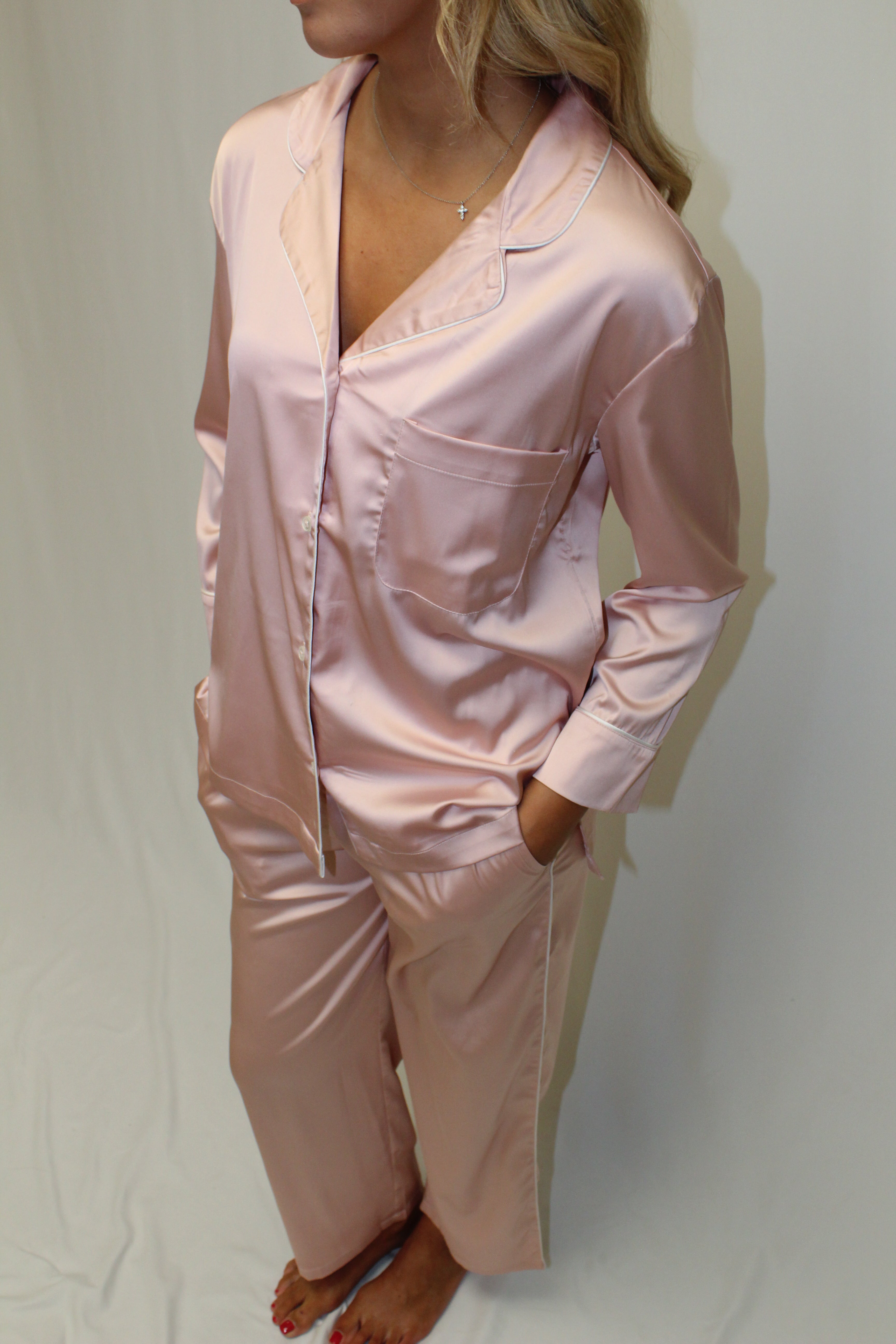 Chloe Satin Pajama Set - Pink
