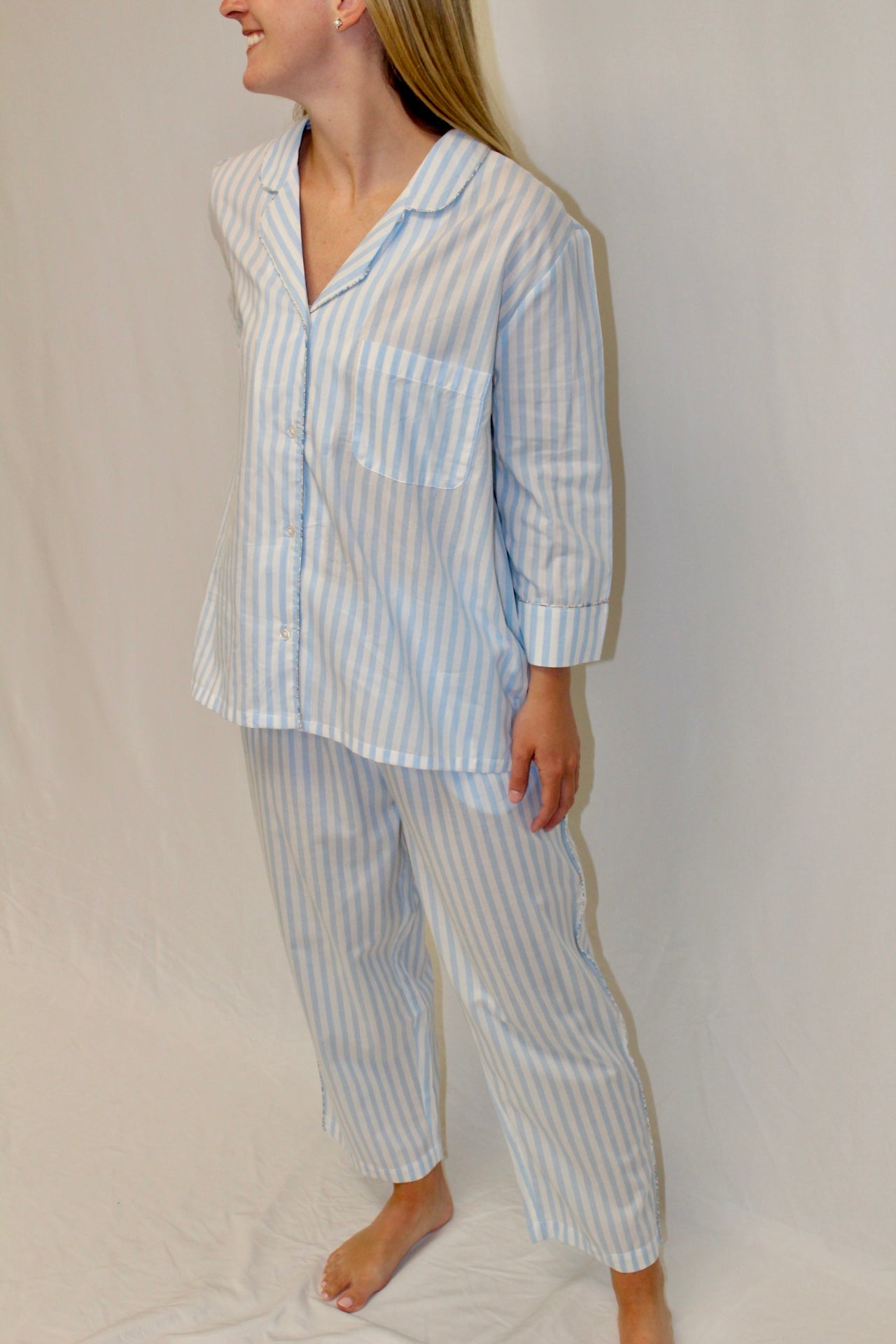 Classic Cotton Striped Capri Pajamas - Blue
