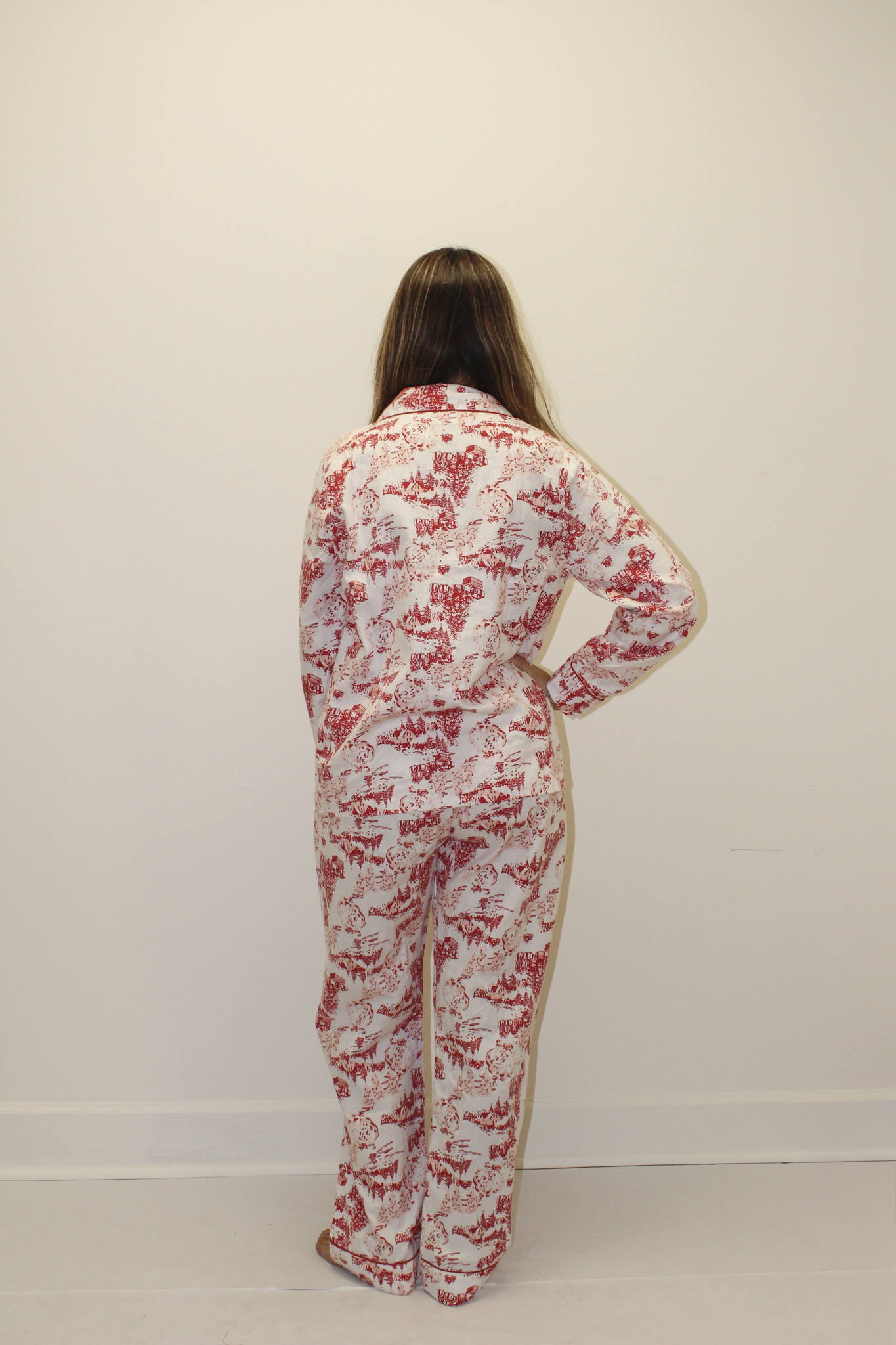 Flannel Long PJ Set - Santa Toile