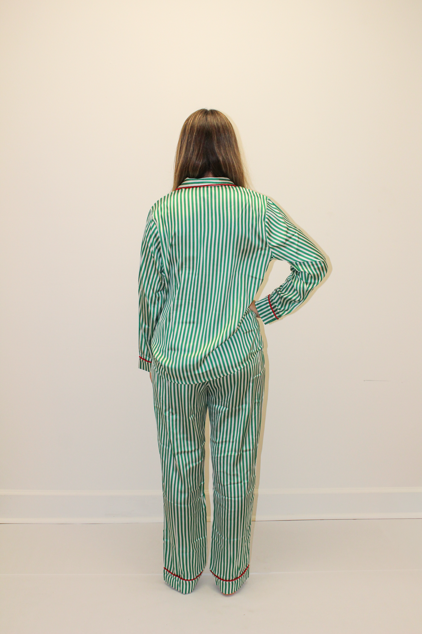 Satin Long PJ Set - Green Stripe