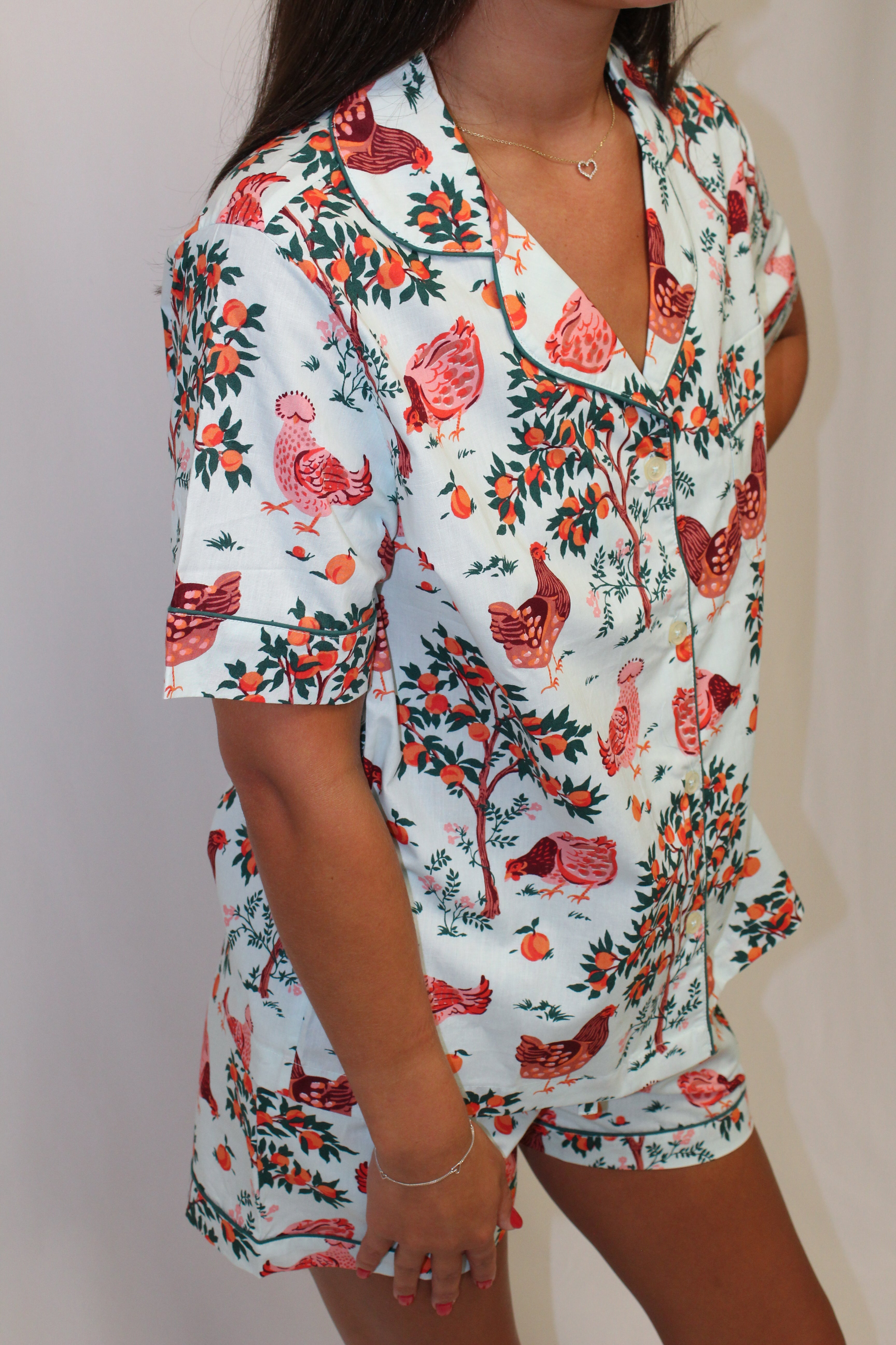 Run the roost in Hen House. Made from 100% organic cotton poplin. Wash, wear & repeat. This set gets softer with every cycle.