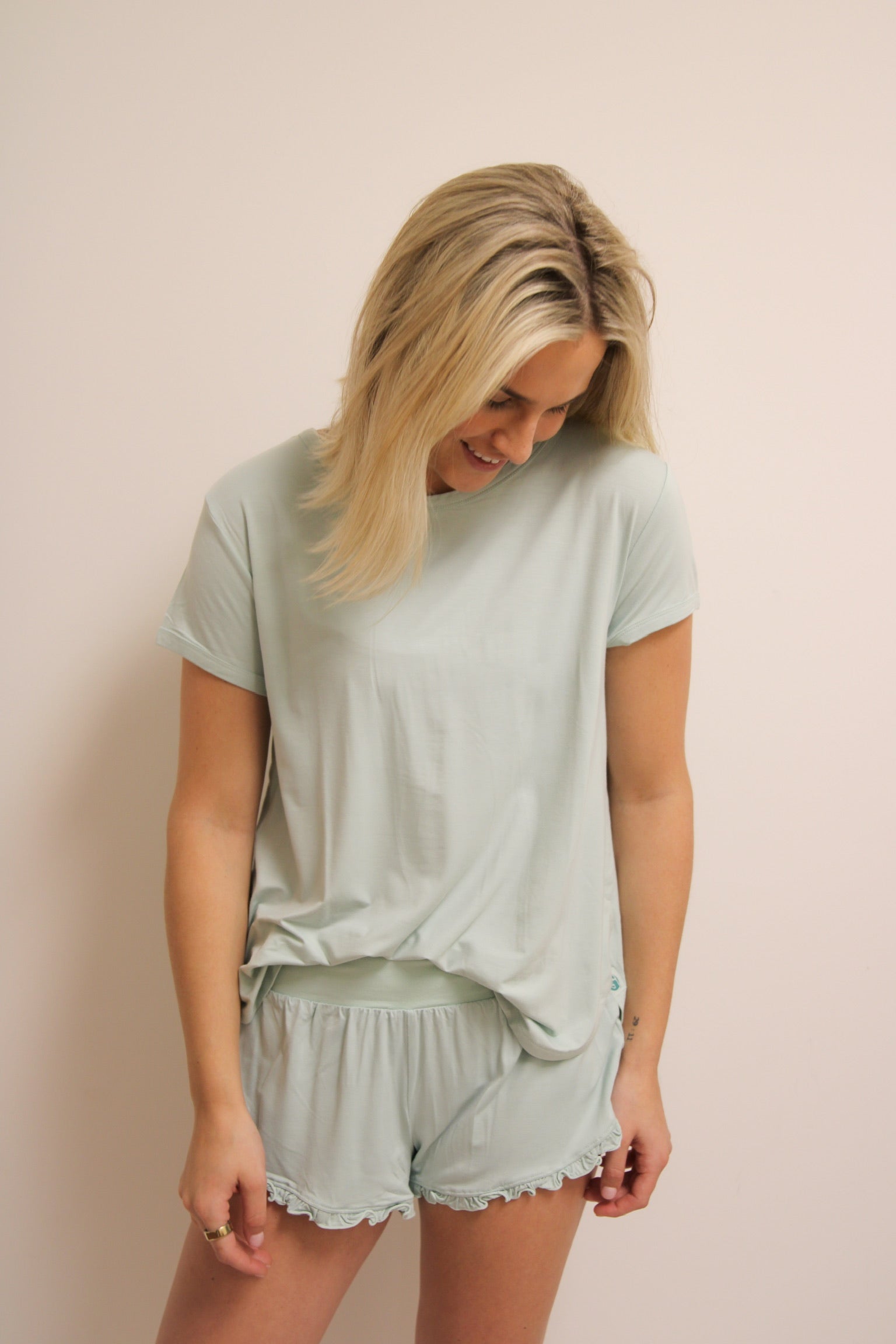 Tulip Tee Ruffe Short Set -Aqua
