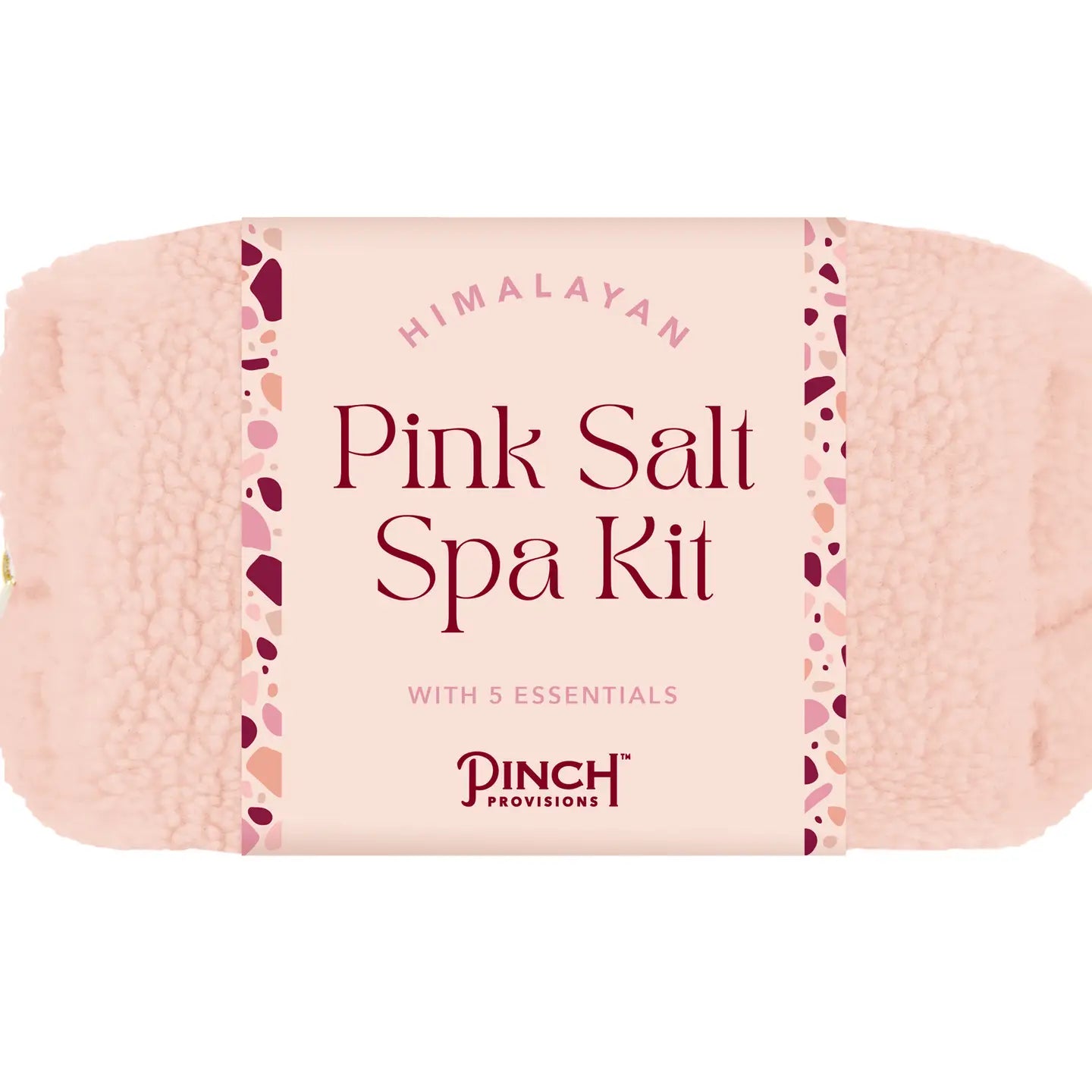 Just say spaaaaah with our new Himalayan Pink Salt Spa Kit, packaged in a blush sherpa dopp bag. Kit contains 5 spa essentials: a pink Himalayan salt massager, an eye mask, a silky scrunchie, lavender bath salts, & an exfoliating mitt. It's the perfect vibe!