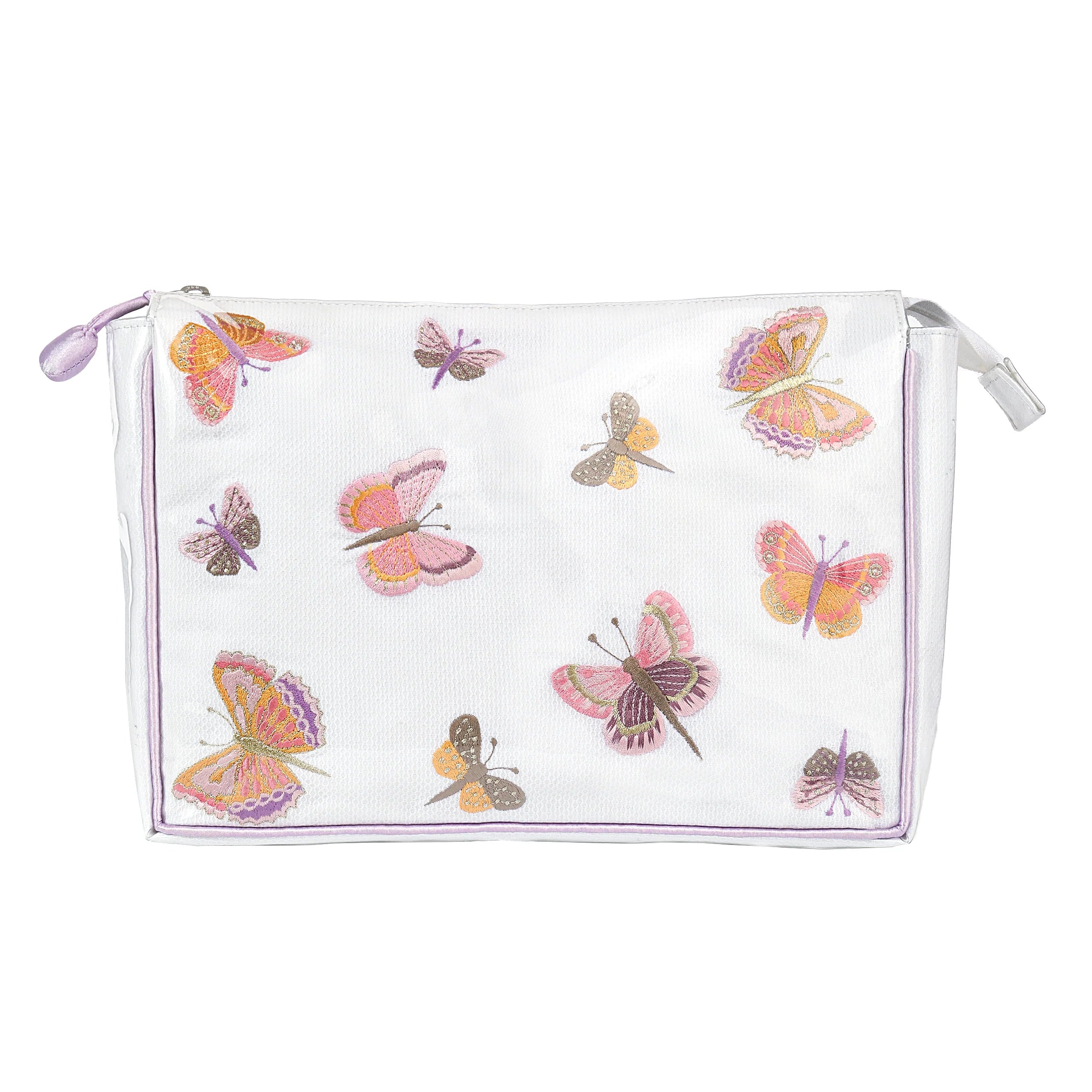 Our Butterfly Large Make Up Bag bridges the gap between our Train Case and Small Cosmetic Bag. This bag provides enough room to stow away all your beauty essentials, meaning you don't have to skip or modify a single step in our regular routine. It's also wrapped and lined in a clear, water resistant material that makes for easy cleanup while protecting against smudges and stains.